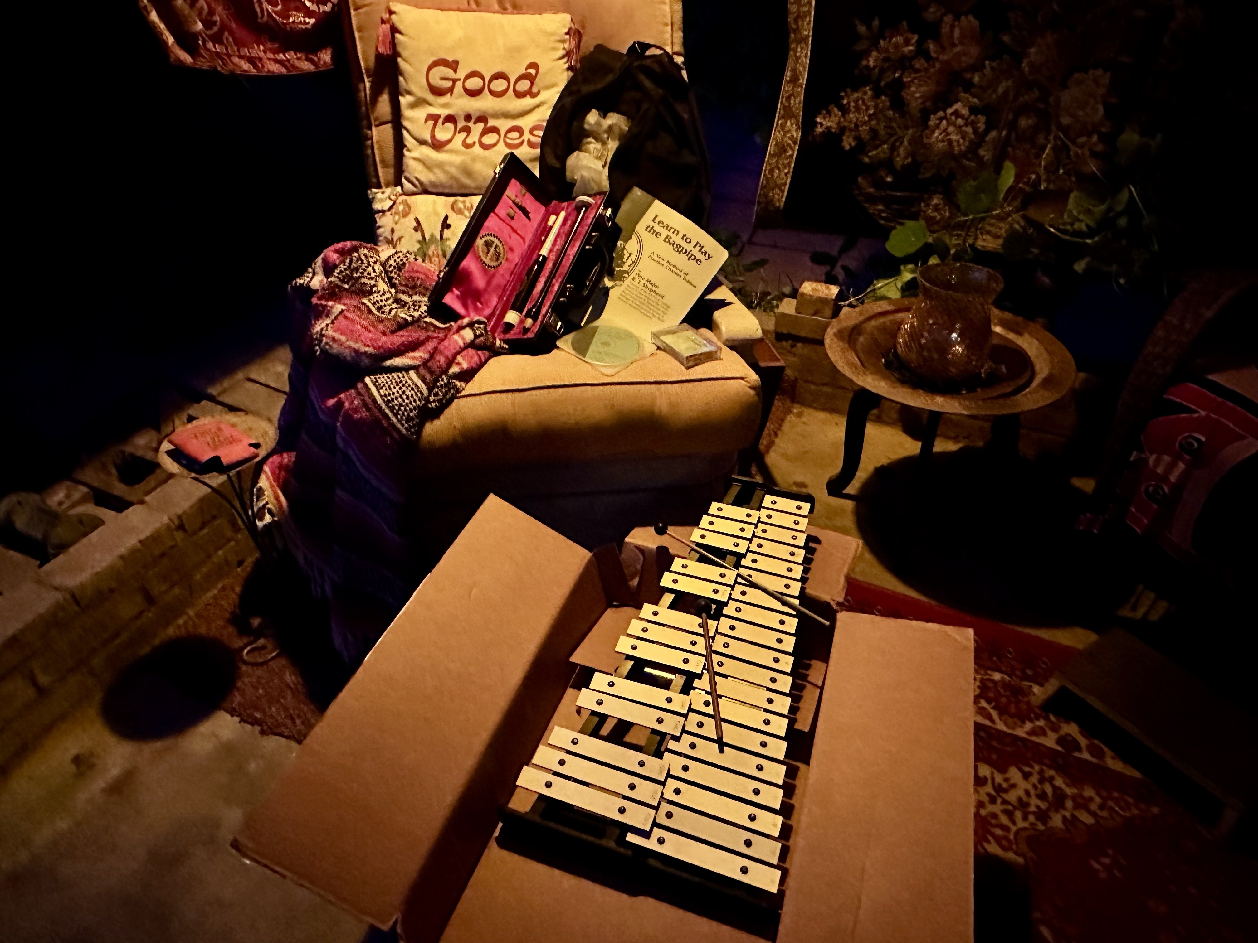I’ve been streaming Scott and Akira 80%of the day to keep moving,motivated and useful. The universe gave me a boone today by putting a glockenspiel and a beginner bagpipe in my path. Always wanted to try. The universe owes me