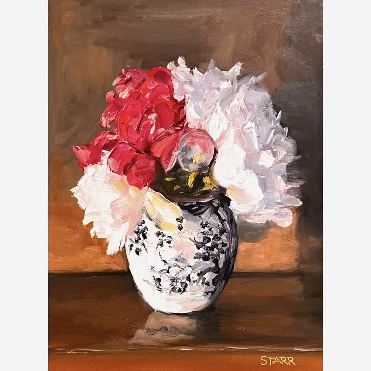 Since I can't take flowers to Scott these will have to suffice: "Three Peonies" oil on panel; 8x6.