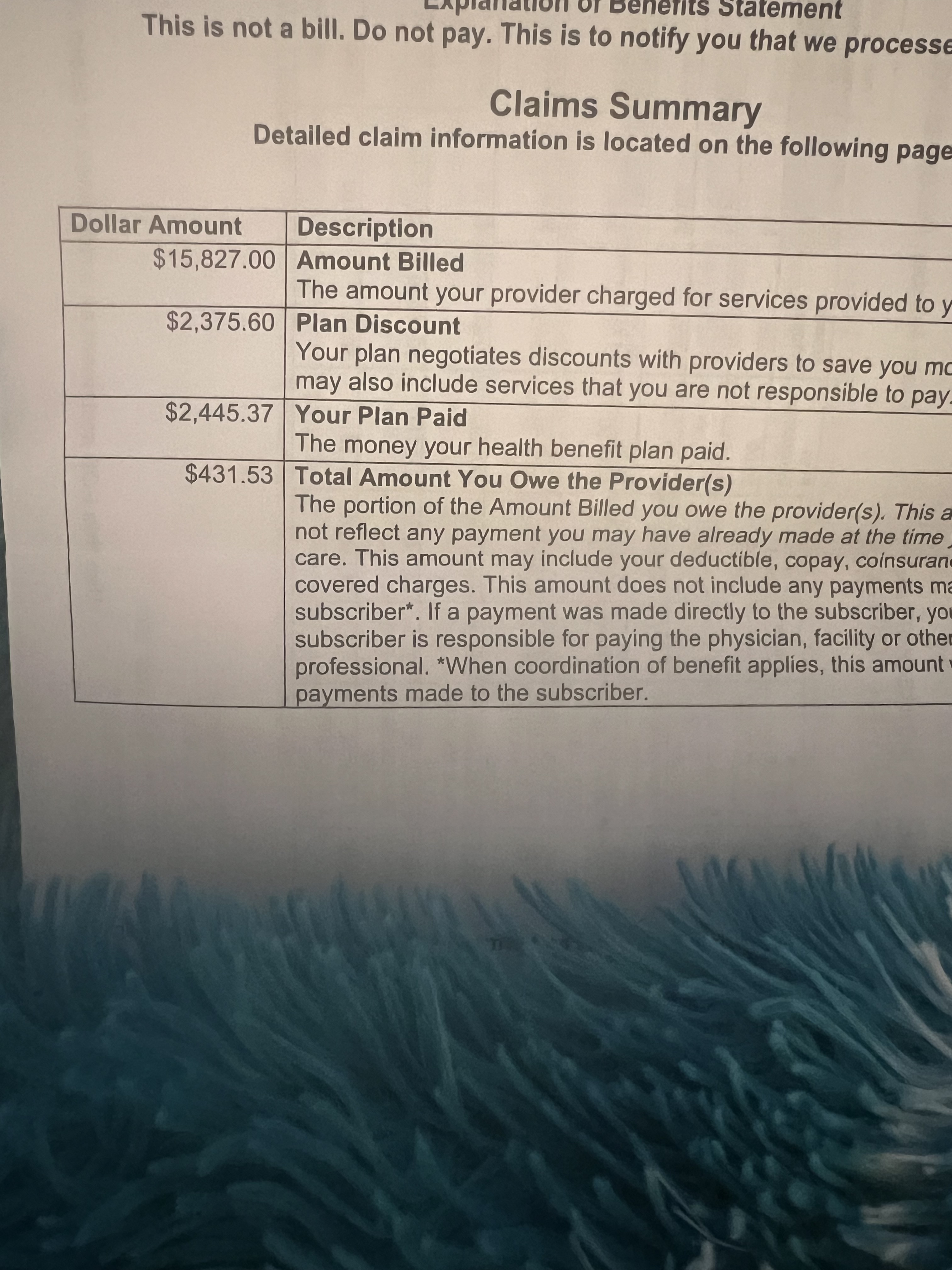 Make it make sense. The bill for my endoscopy/colonoscopy: