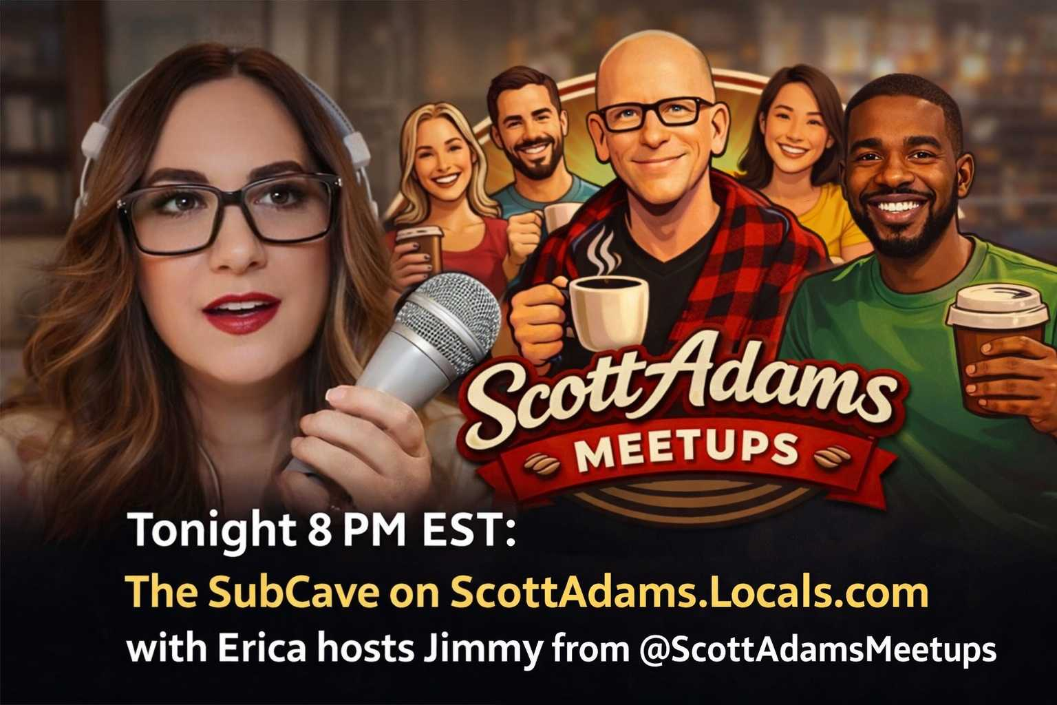 with ERICA @ZiaErica hosts JIMMY from @ScottAdamsMeet ups.